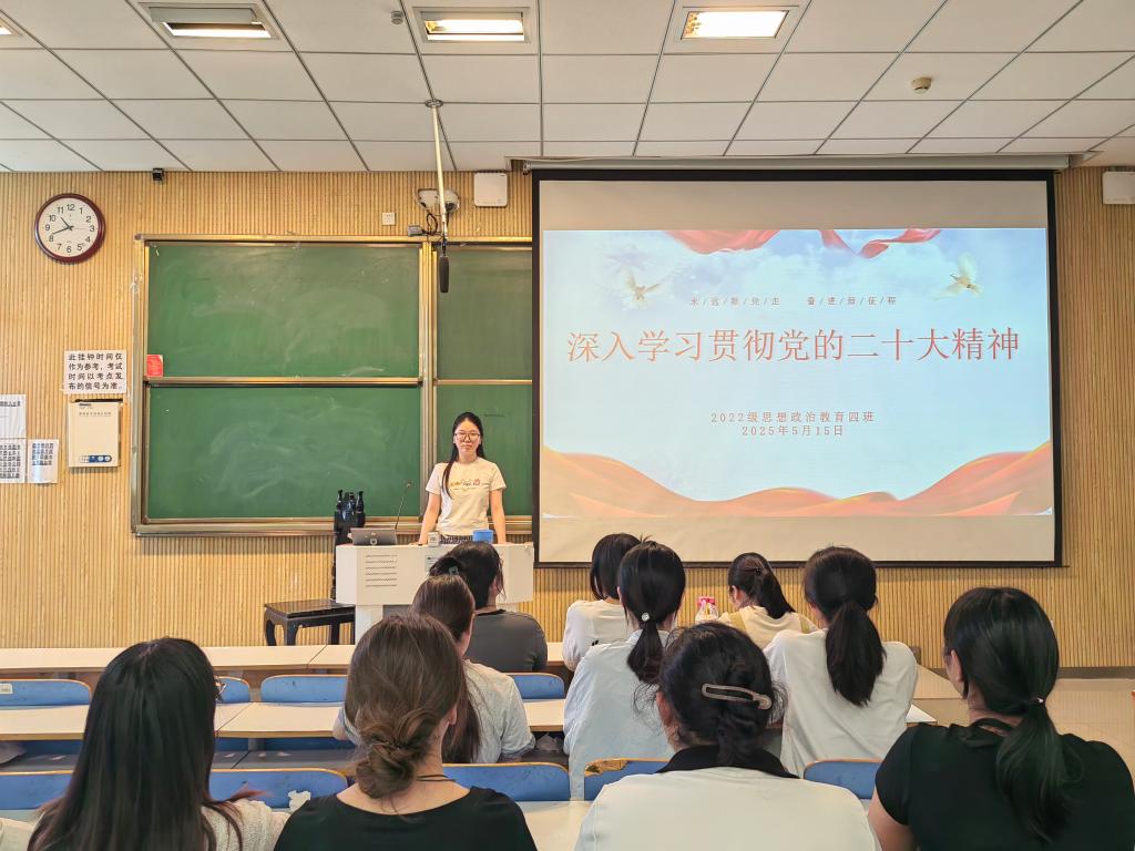 5月15日上午,明升MS88官网2022级思想政治教育四班在社科楼515教室组织召开“深入学习贯彻党的二十大精神”主题班会。明升MS88官网2022级思想政治教育四班全体成员参与本次班会。本次班会由班长牛志杰主持。